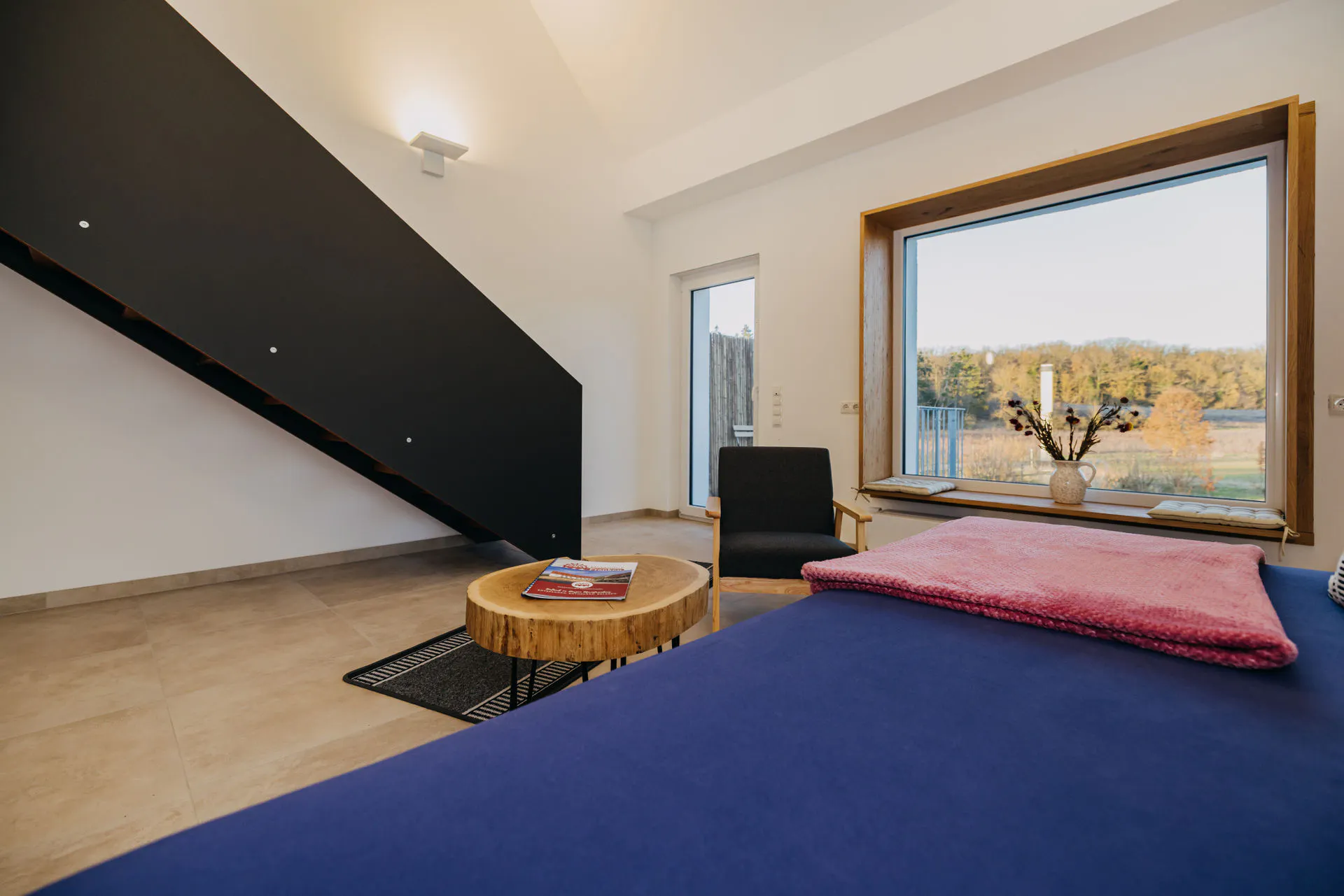 From the panoramic seating window of The Gaustube, you can admire the vast landscape and unwind with a good book.