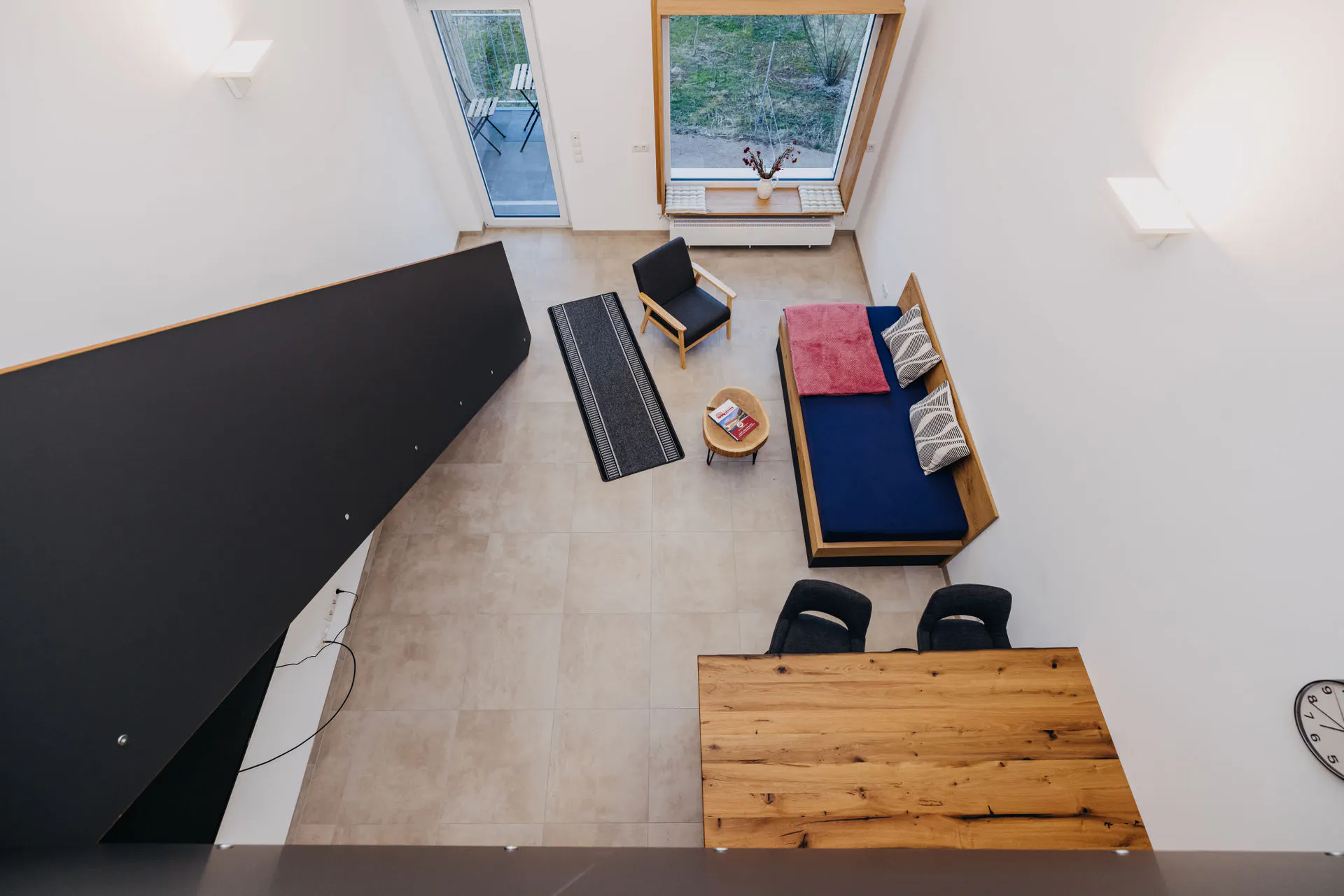 The sleeping area is located on the open gallery.