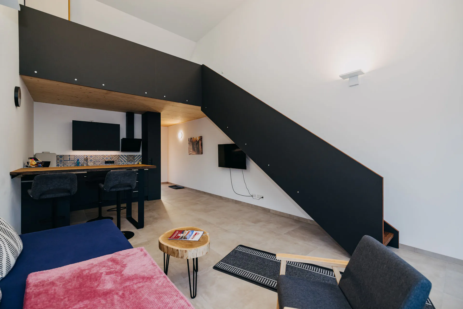 A fully equipped kitchen, TV, Wi-Fi, and a sofa bed are also standard.