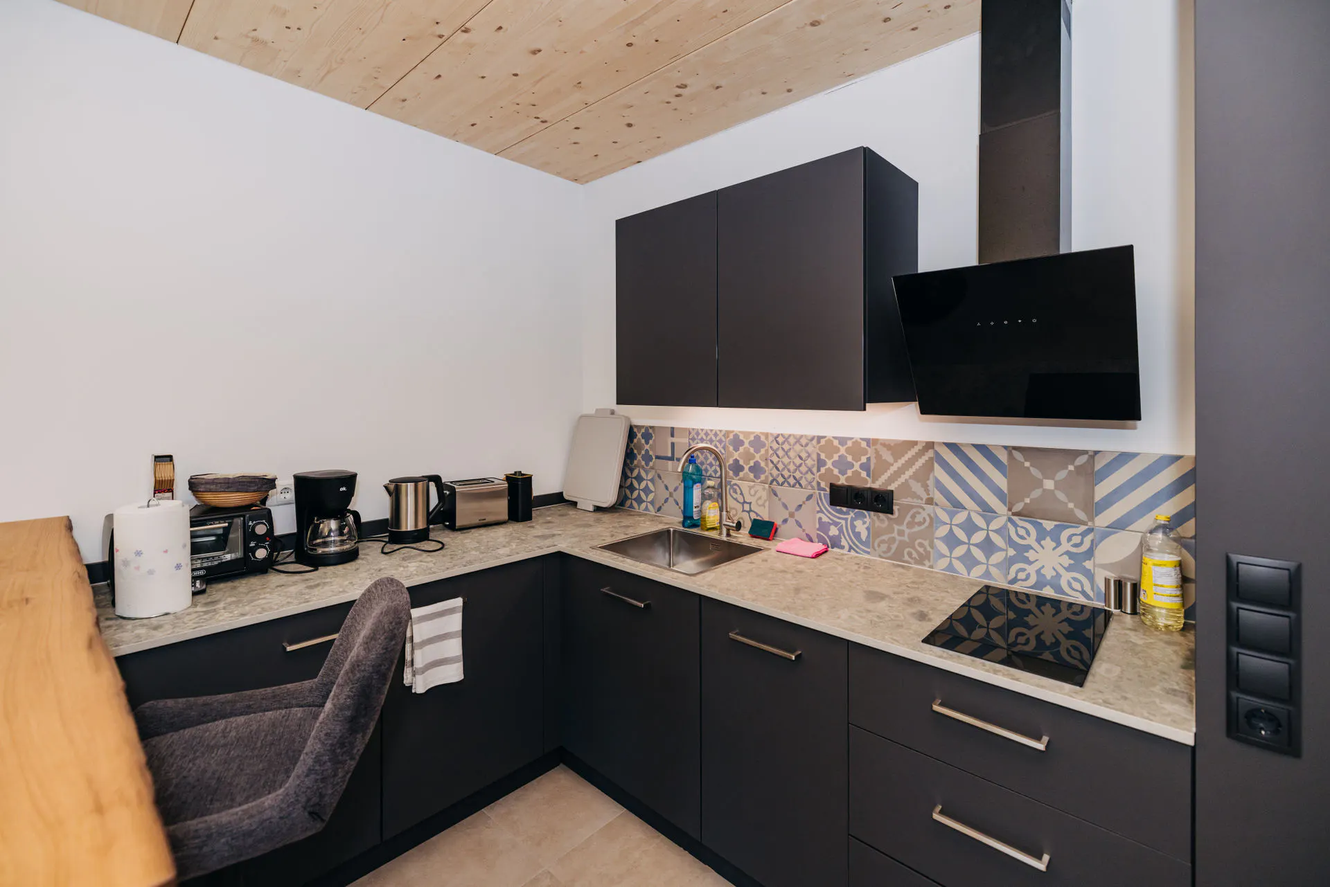 Like all our apartments, The Mühlbach features a balcony and a bathroom with a shower. A fully equipped kitchen, TV, Wi-Fi, and a sofa bed are also standard.