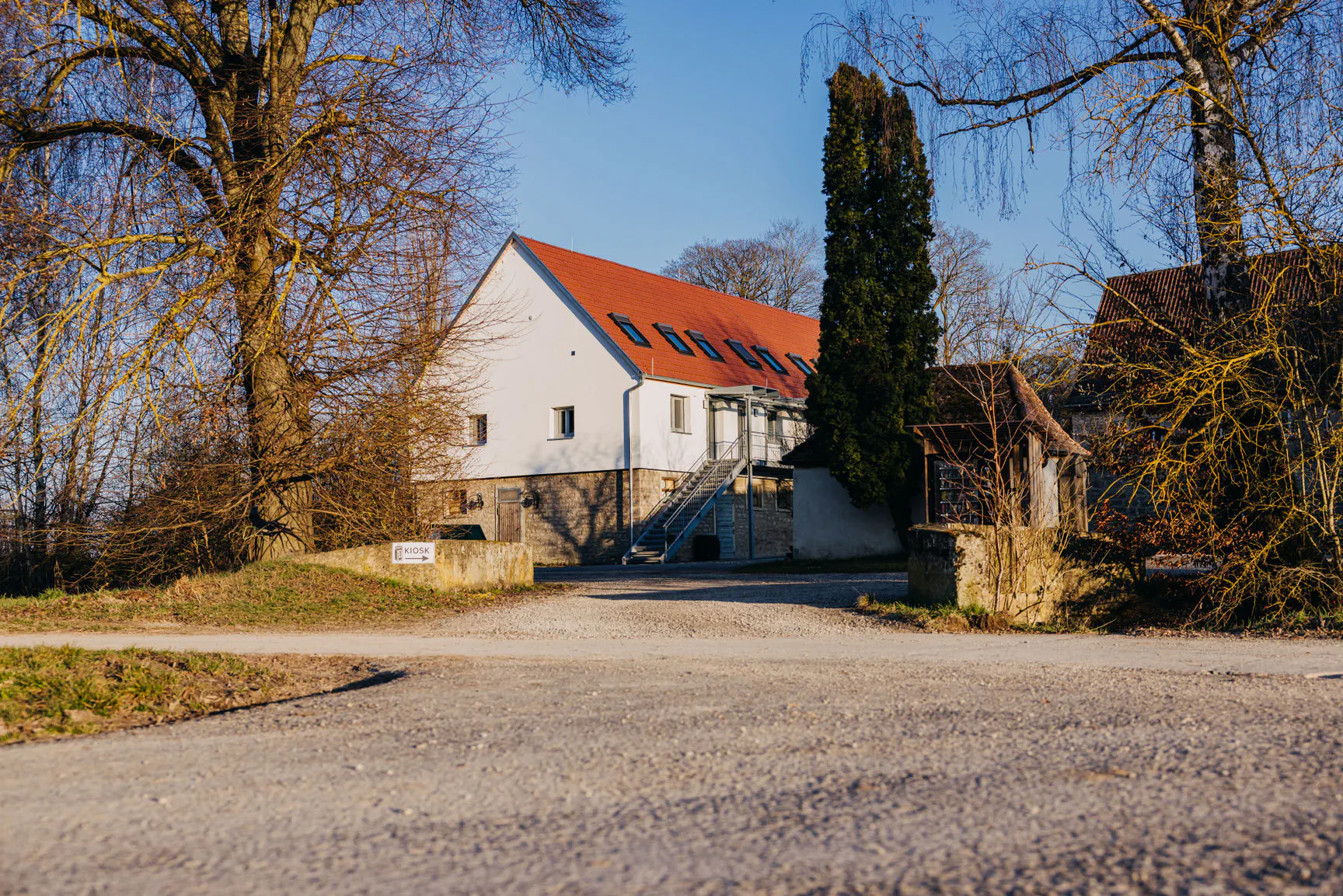 The first of our apartments with a view of the landscape pond. From the panoramic seating window, you can gaze into the vast countryside and let the gentle babbling of the Mühlbach stream transport you to a distant fantasy world on a warm summer evening.